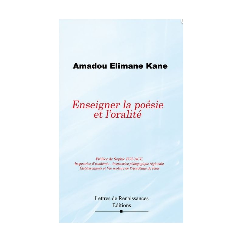 Amadou Elimane Kane, poète écrivain et enseignant chercheur en sciences cognitives, est l’auteur de plusieurs recueils de poésie, d’un récit et d’une anthologie Enseigner la lecture/écriture et l’oralité : à la rencontre de 14 poètes sénégalais contemporains, publiés aux éditions Lettres de Renaissances. Il est également le fondateur de l’Institut Culturel Panafricain et de recherche de Yene au Sénégal
